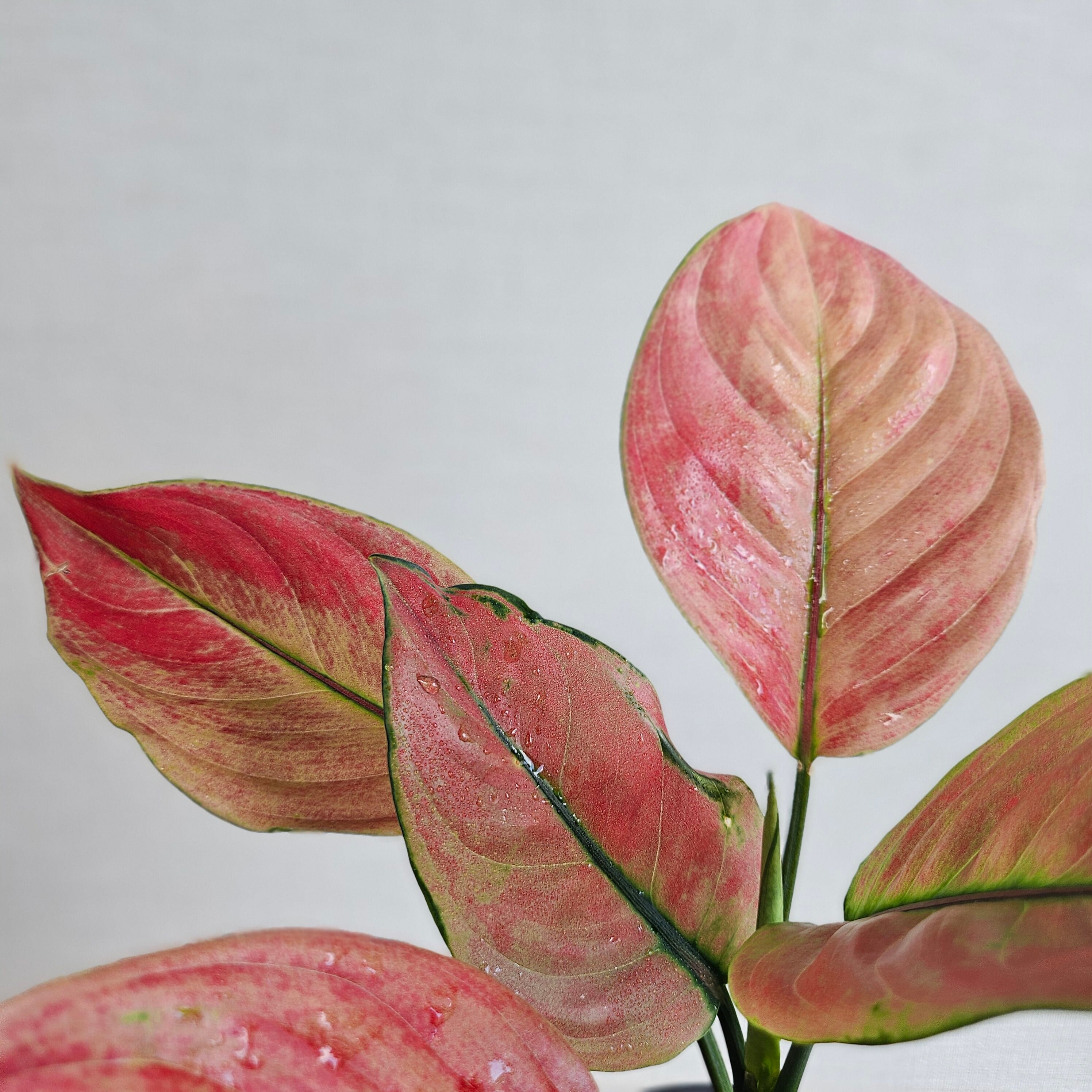 明るい赤〜ピンクの葉に、グリーンのふちどりがとっても印象的なアグラオネマ「ヘンヘン」。♡
