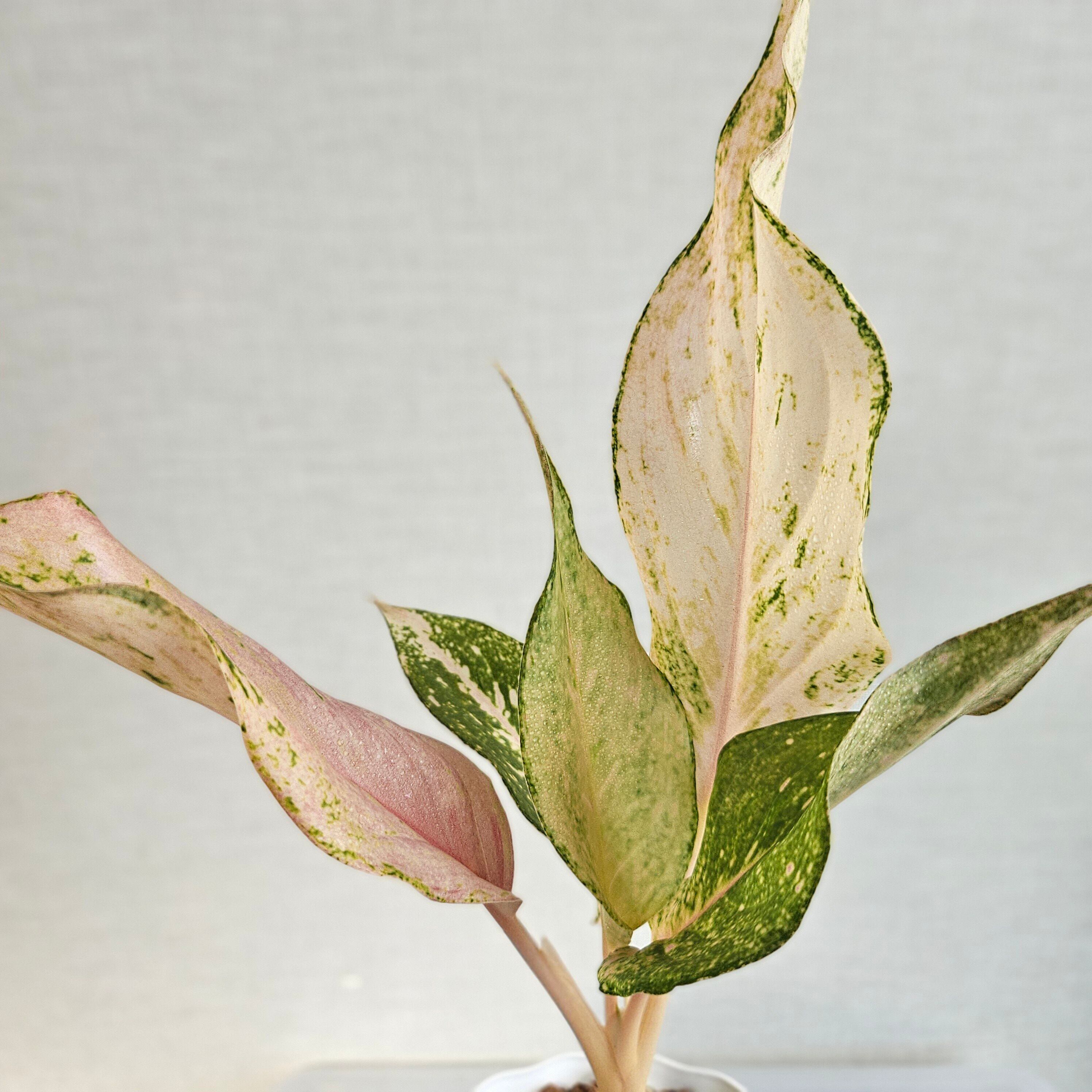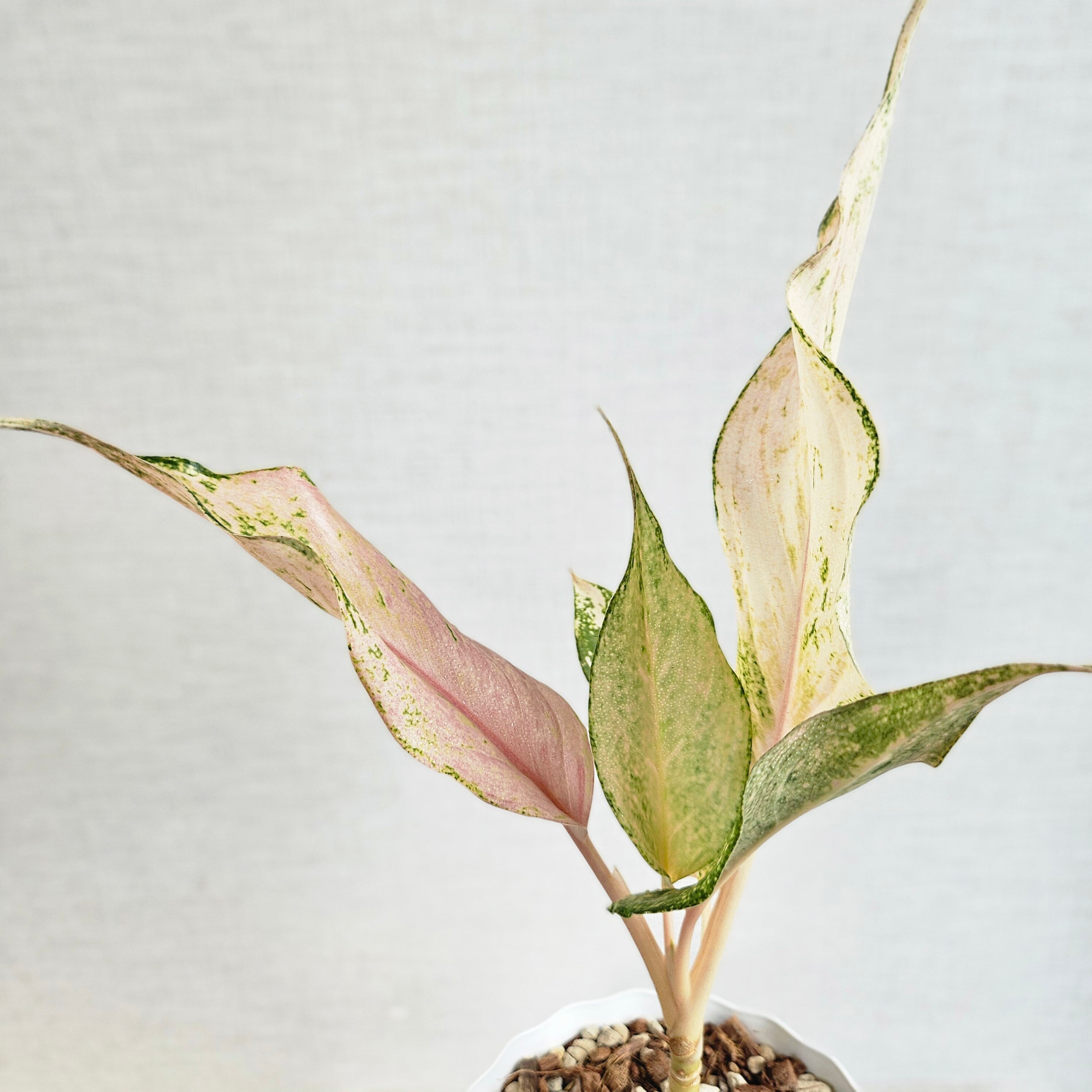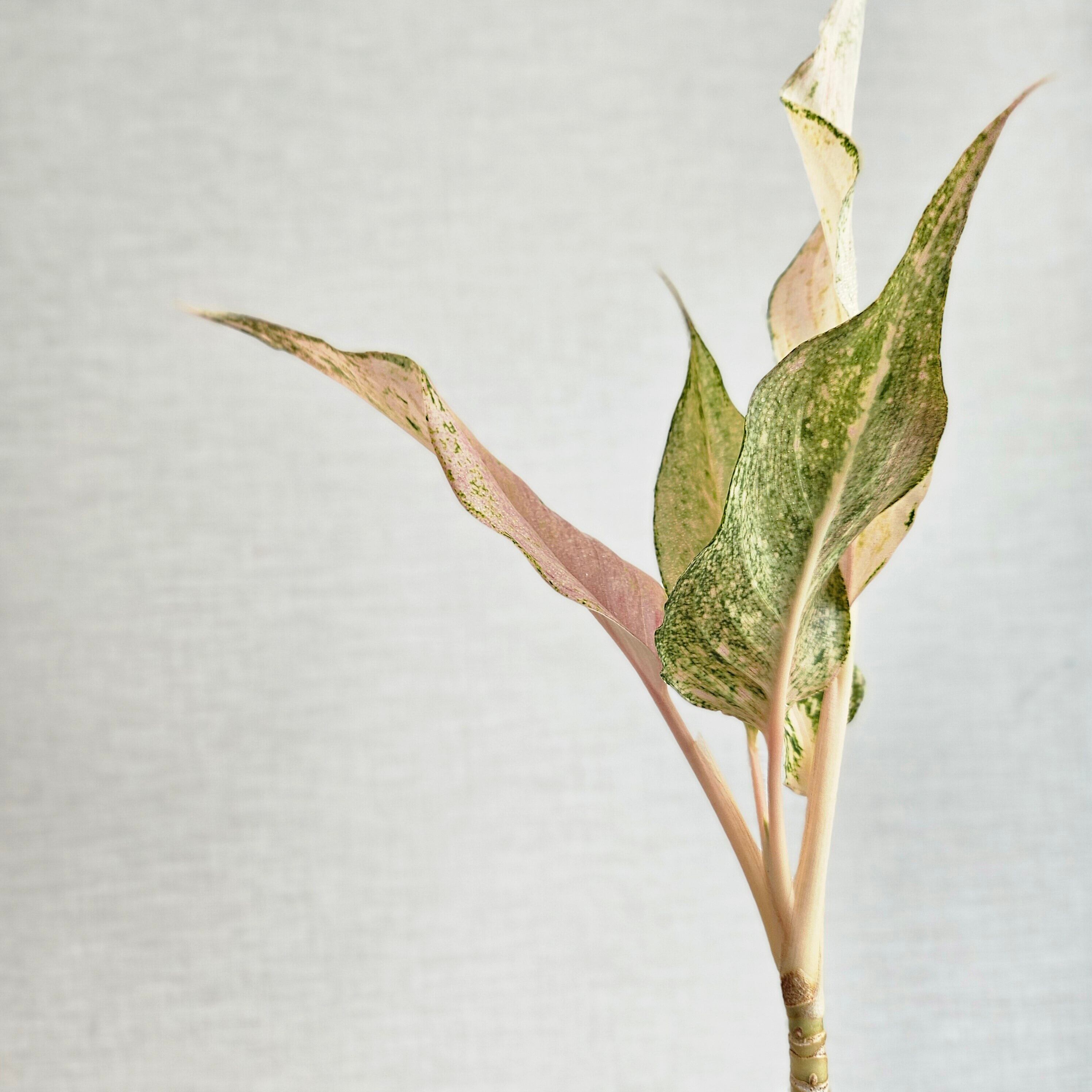 やわらかなピンクとグリーンのグラデーションが美しい、斑入りのアグラオネマです。