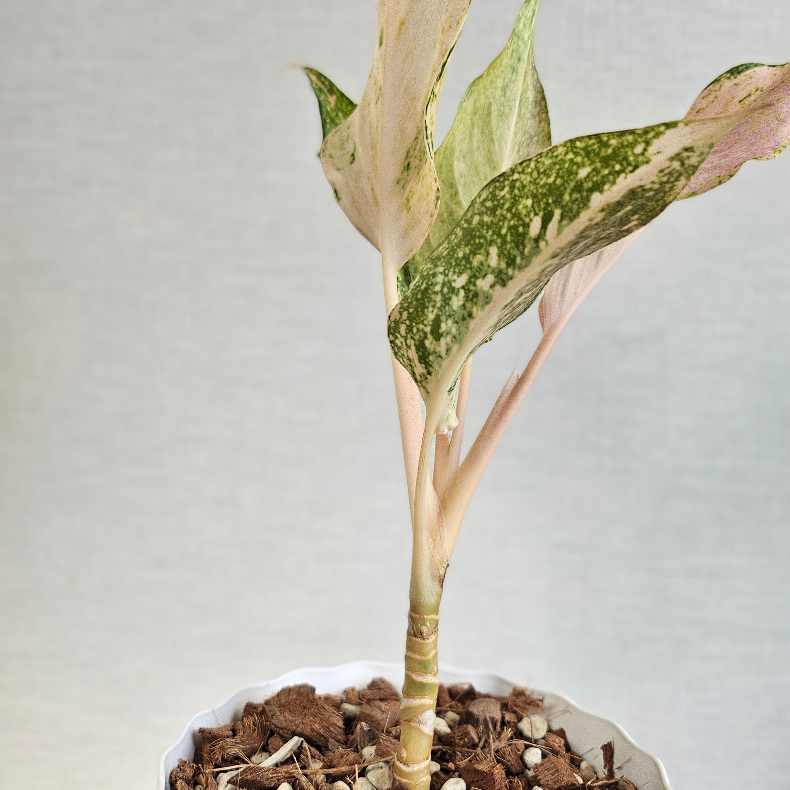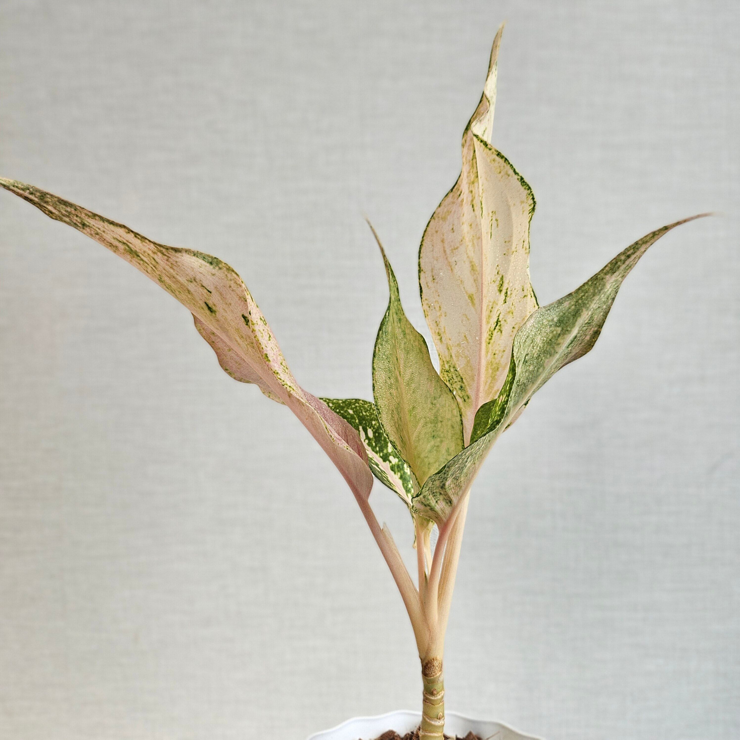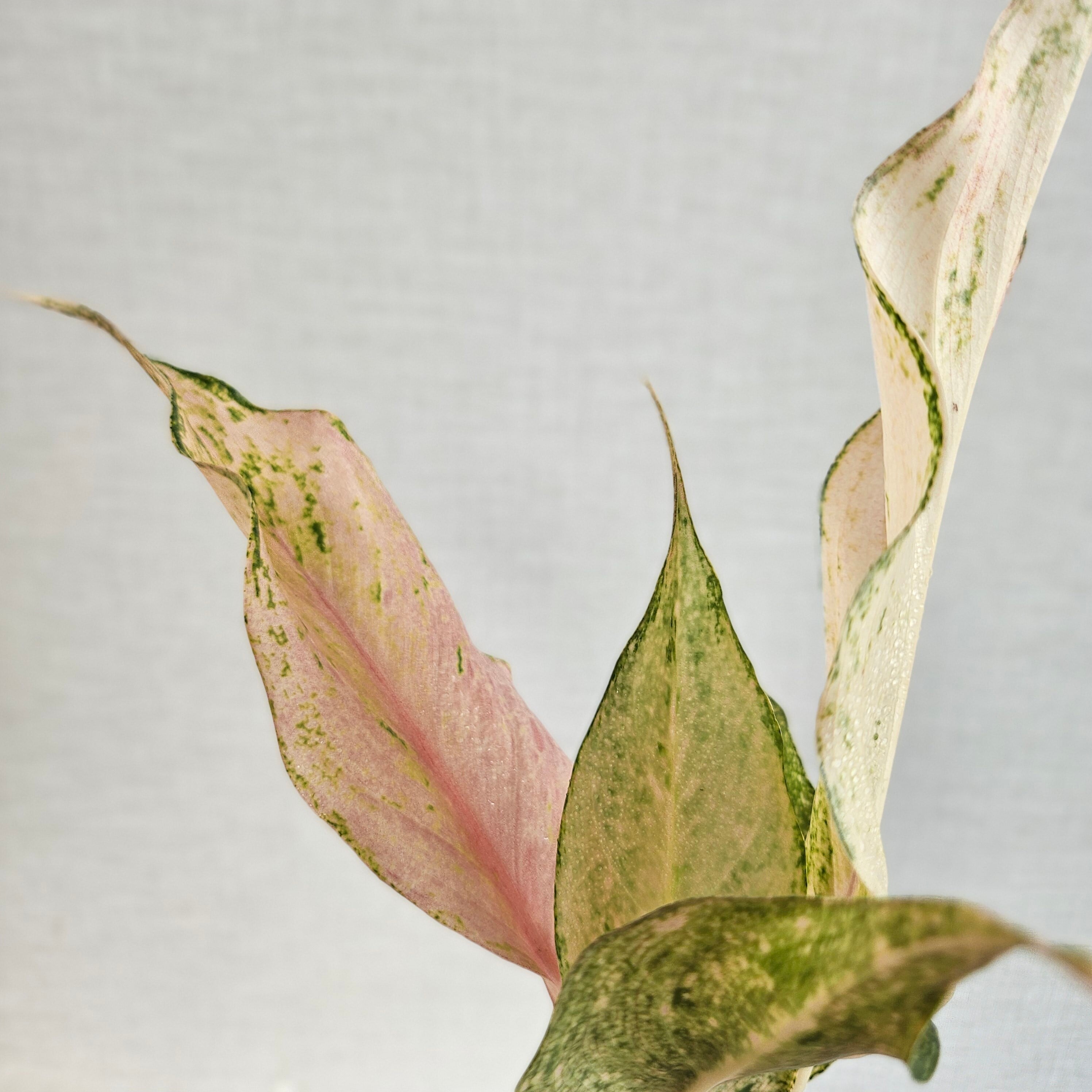 やわらかなピンクとグリーンのグラデーションが美しい、斑入りのアグラオネマです。