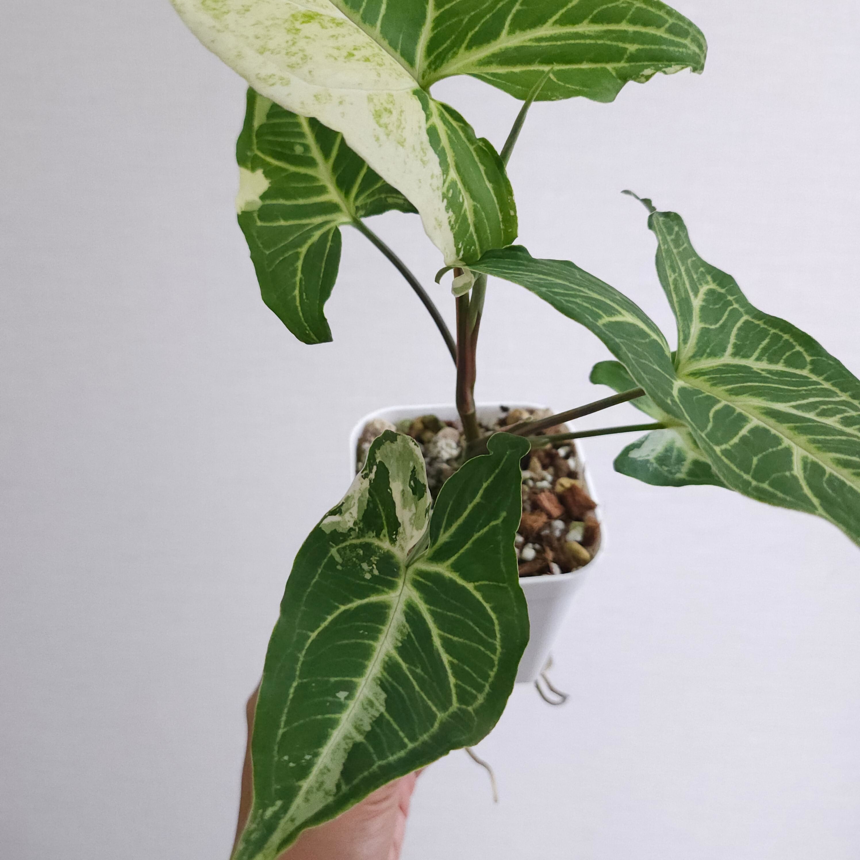 《シンゴニウム バーティック バリエガータ》Syngonium Bitik Variegated 観葉植物 斑入り ポット発送