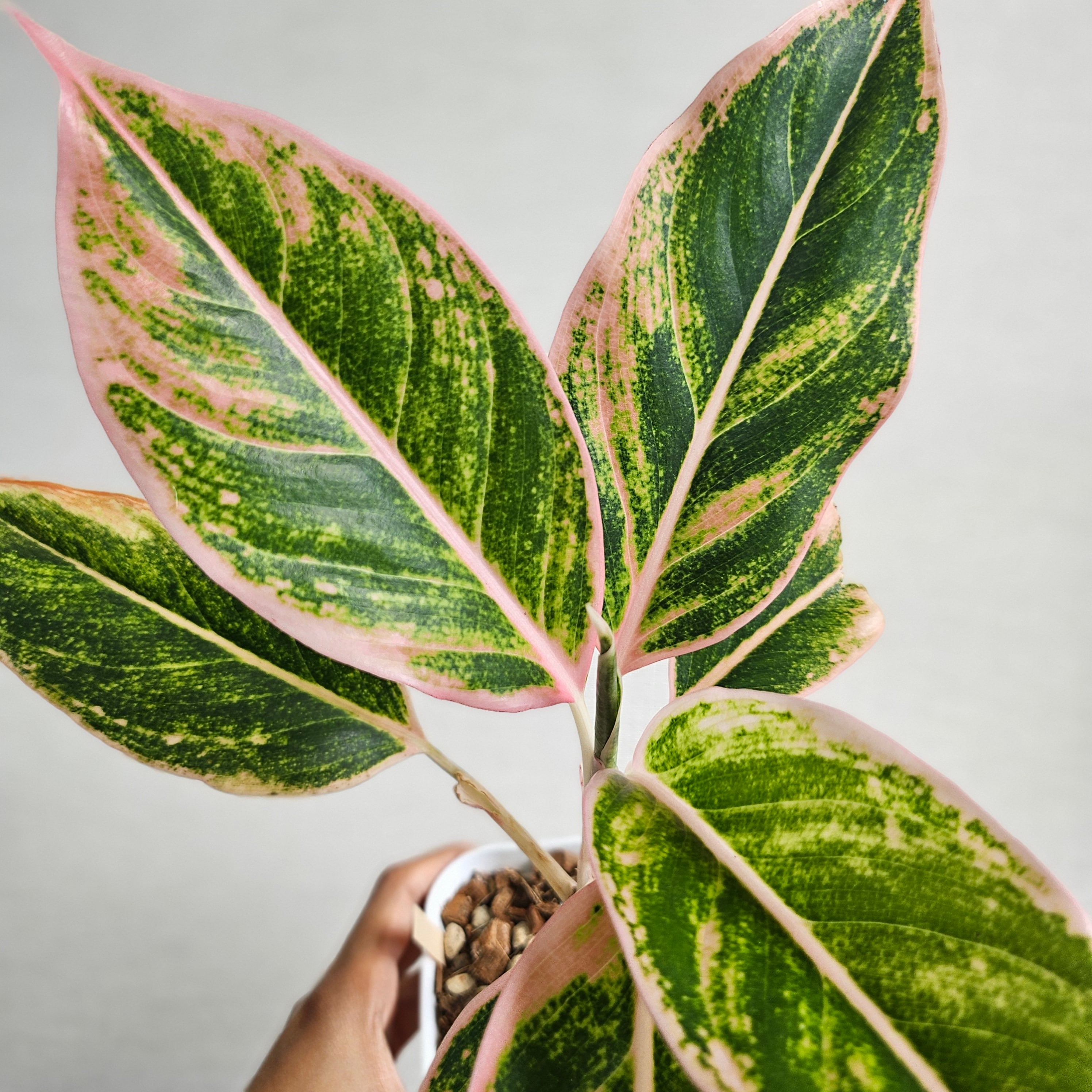 アグラオネマ・ピンクオーロラは、鮮やかなピンクとグリーンのコントラストが美しい観葉植物です。葉のふちや葉脈がピンク色に染まり、上品で華やかな印象を与えます。
