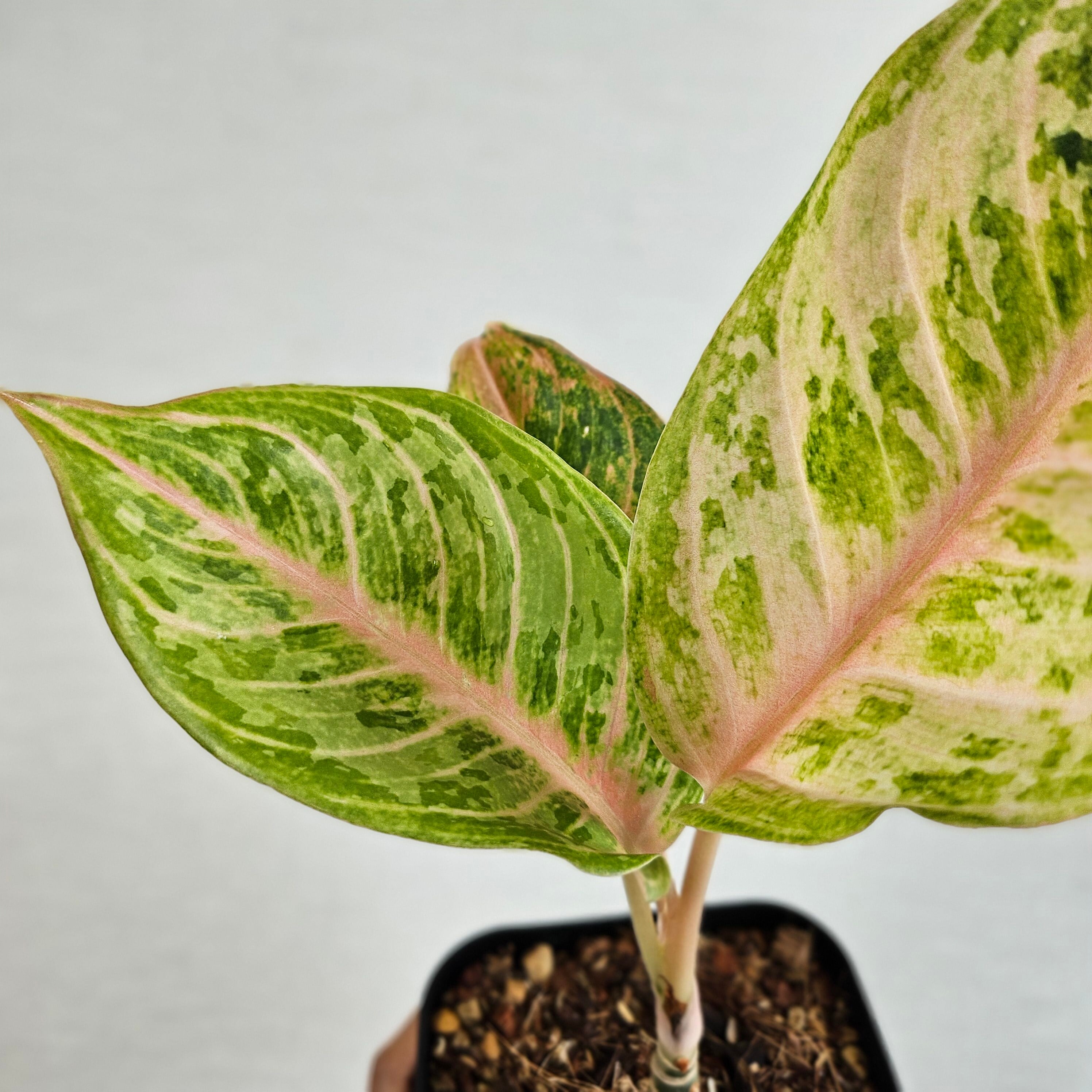 ピンク色の斑の入り方は品種によって様々で、葉のほぼ全体がピンク色になるもの、葉脈沿いにピンク色が入るもの、またはダルメシアンのように点状のピンクの斑が入るものがあります。