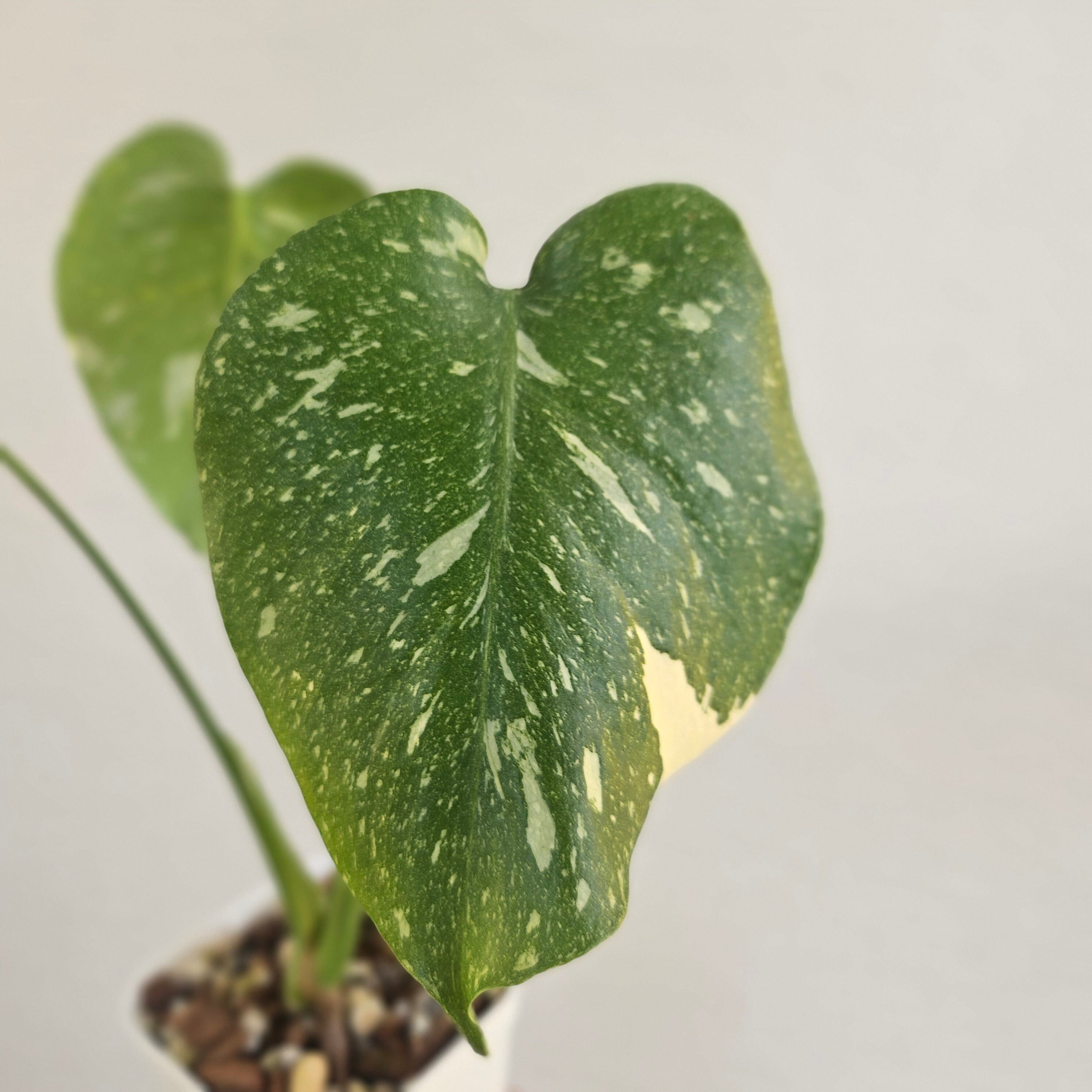 濃緑色の葉に星空を散りばめたような散斑が入るモンステラです。