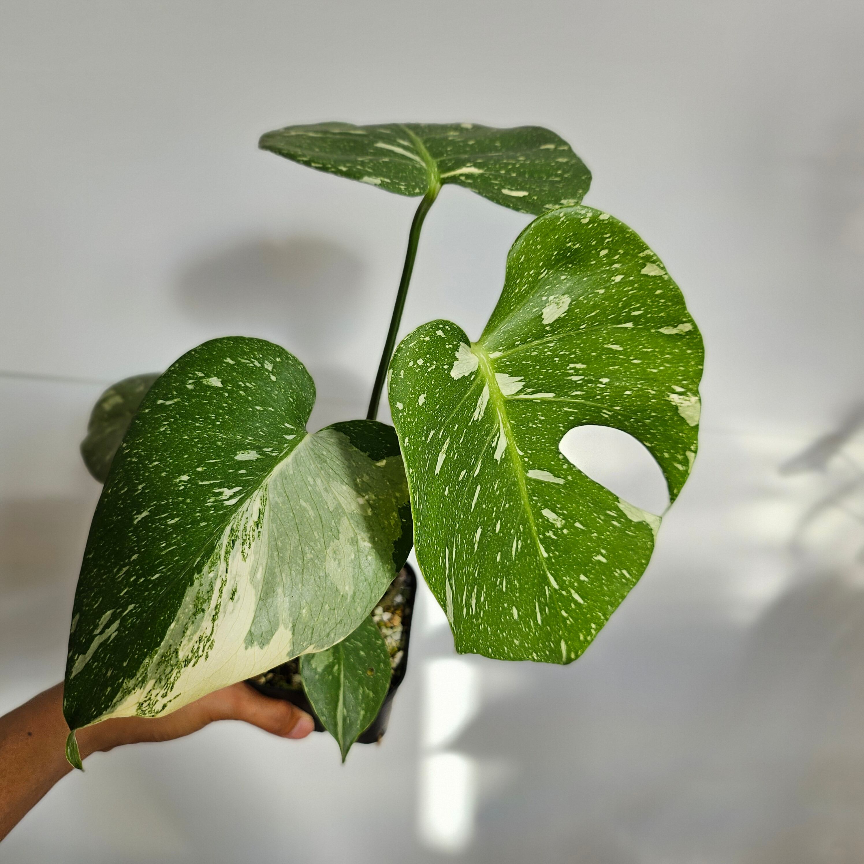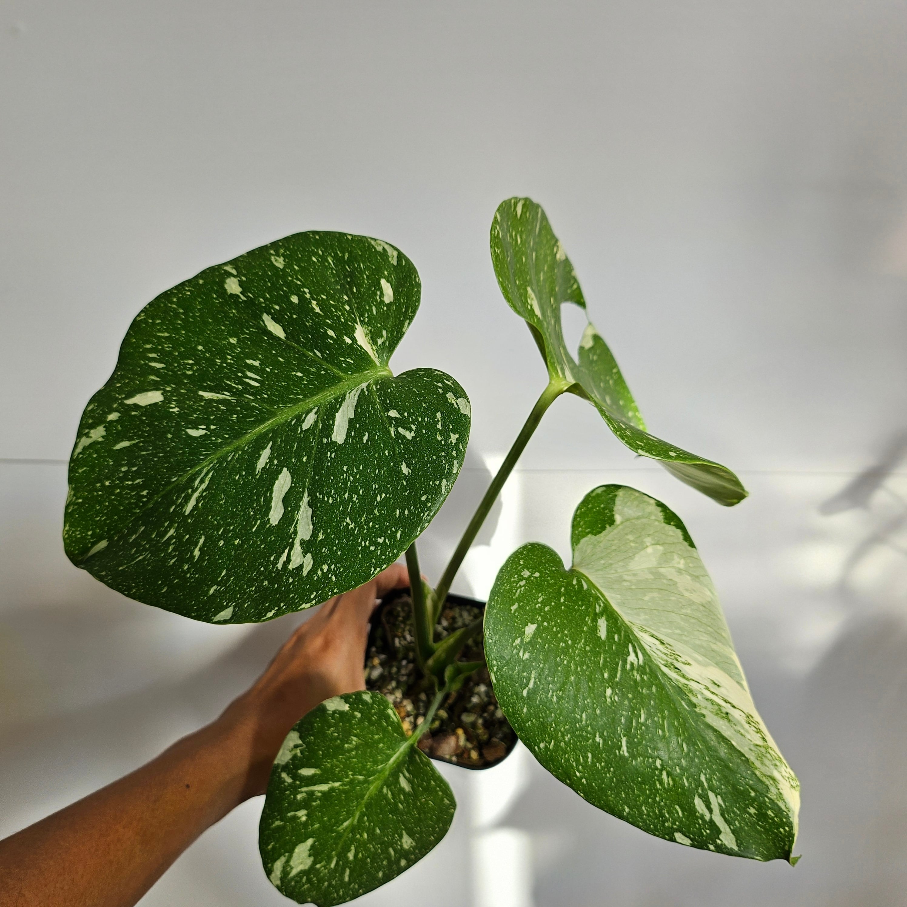 濃緑色の葉に星空を散りばめたような散斑が入るモンステラです。